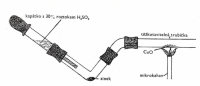 Semimikrotechnika: 2 ohnuté skleněné trubičky, 3 krátké gumové hadičky, kapátko, těžkotavitelná trubička, kahan, zkumavka, granule Zn, roztok H2SO4 (w = 15 %), CuO.